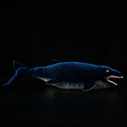 This plush model reflects the general body form typical of large ichthyosaurs, with a long, tapered snout, strong tail, and paddle-like flippers used for steering and propulsion. Fossil material suggests that Himalayasaurus was among the larger members of its group, equipped with robust teeth suited to tackling relatively large prey.